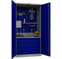 Инструментальный шкаф TC-1995-041040 предназначен для хранения инструмента, приспособлений, запасных частей и различных материалов в мастерских, гаражах, заводских цехах и производственных помещениях.Вы можете скомпоновать свой собственный шкаф для инструментов TC-1995 в соответствии с вашими нуждами, выбрав и наиболее удобным образом расположив внутри шкафа необходимые вам комплектующие: перегородки, ящики (до 12-ти больших или до 24-х малых), полки двух видов и перфорированные экраны.